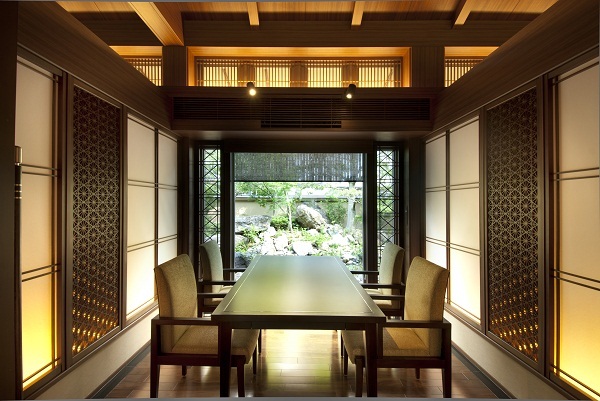 そんな”忍者がいそう”な外観からロビーに入ると、素敵な和モダンなロビーに、日本庭園をイメージした広いお庭から暖かい光が差し込んでいて、本当におしゃれでした!